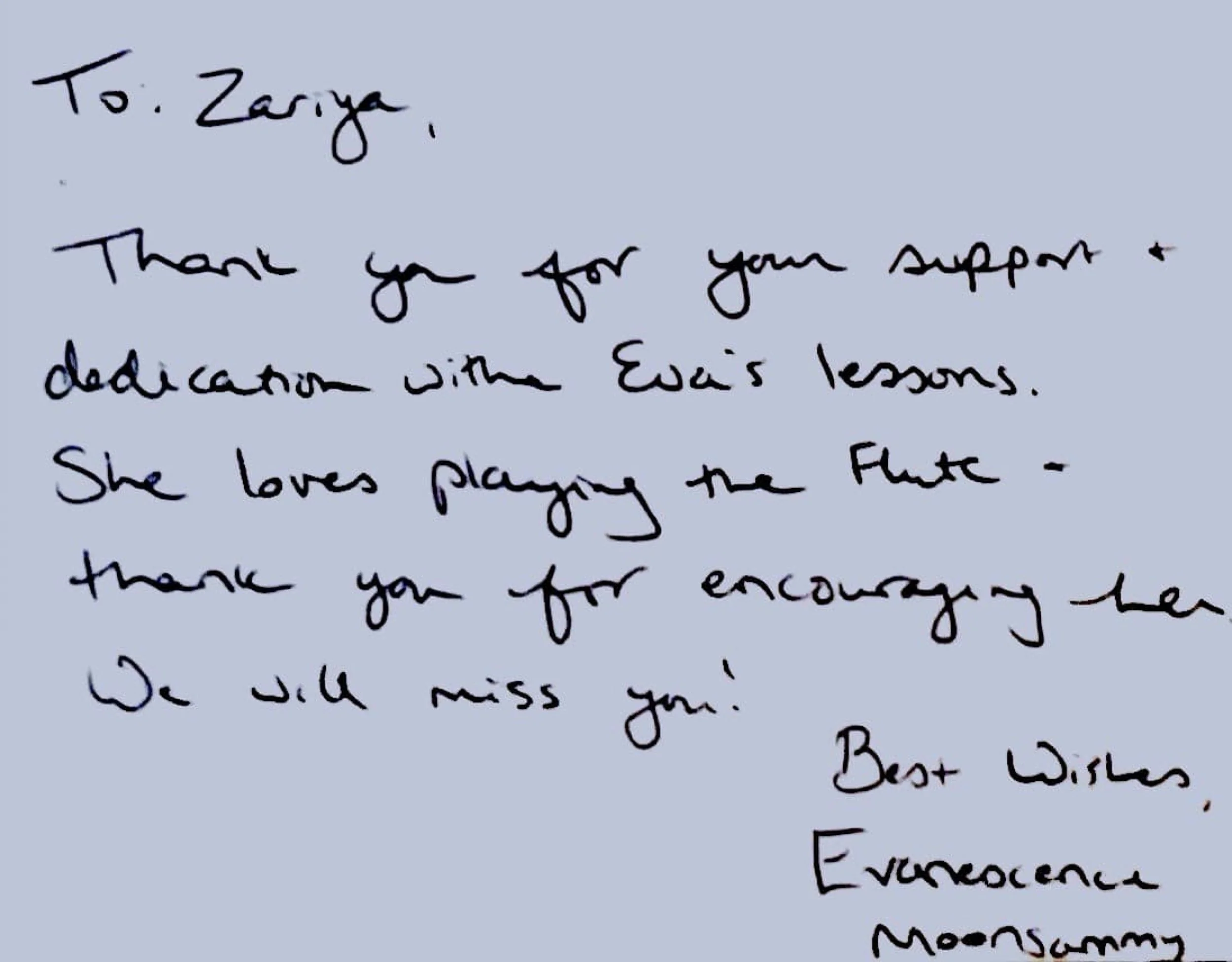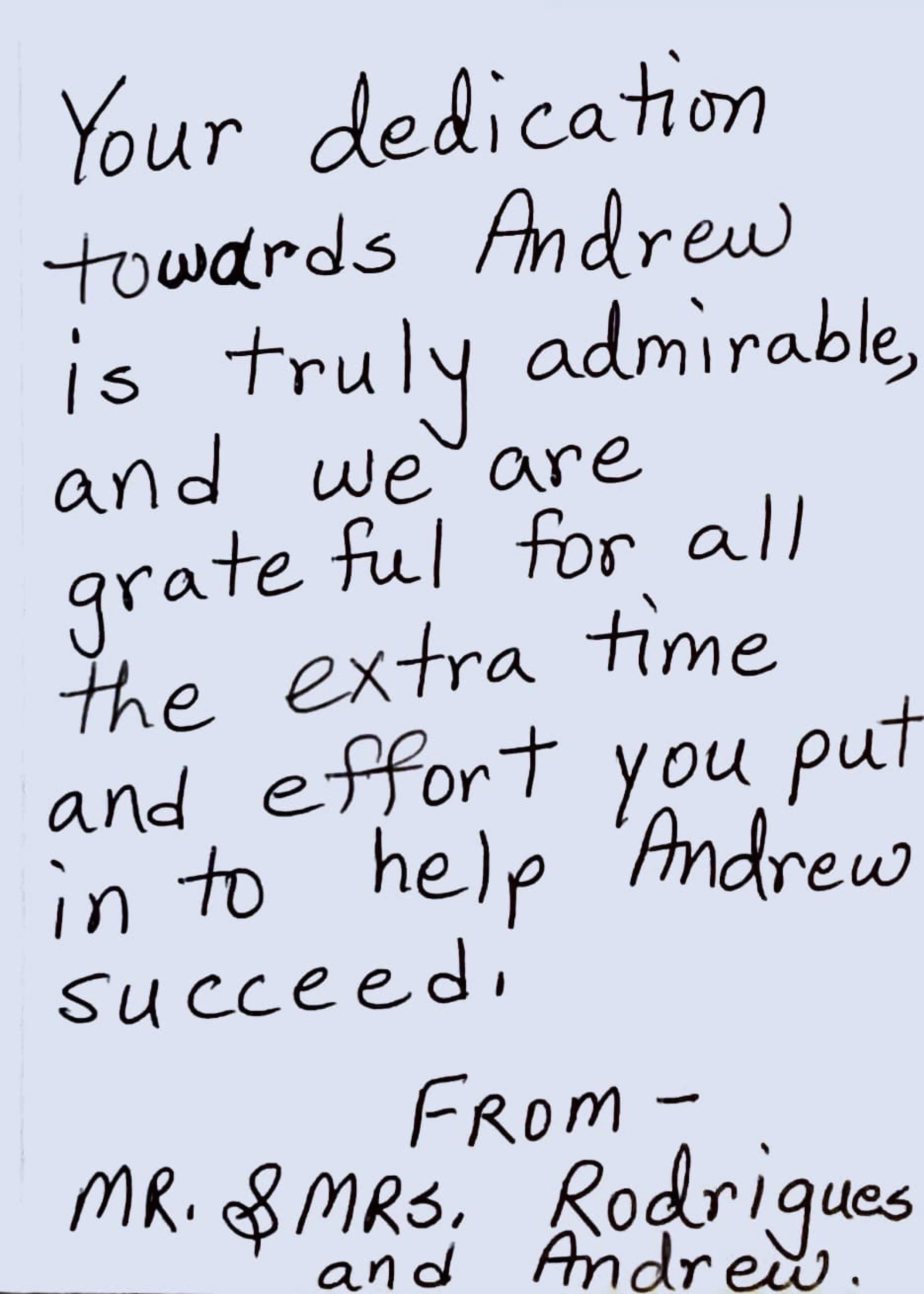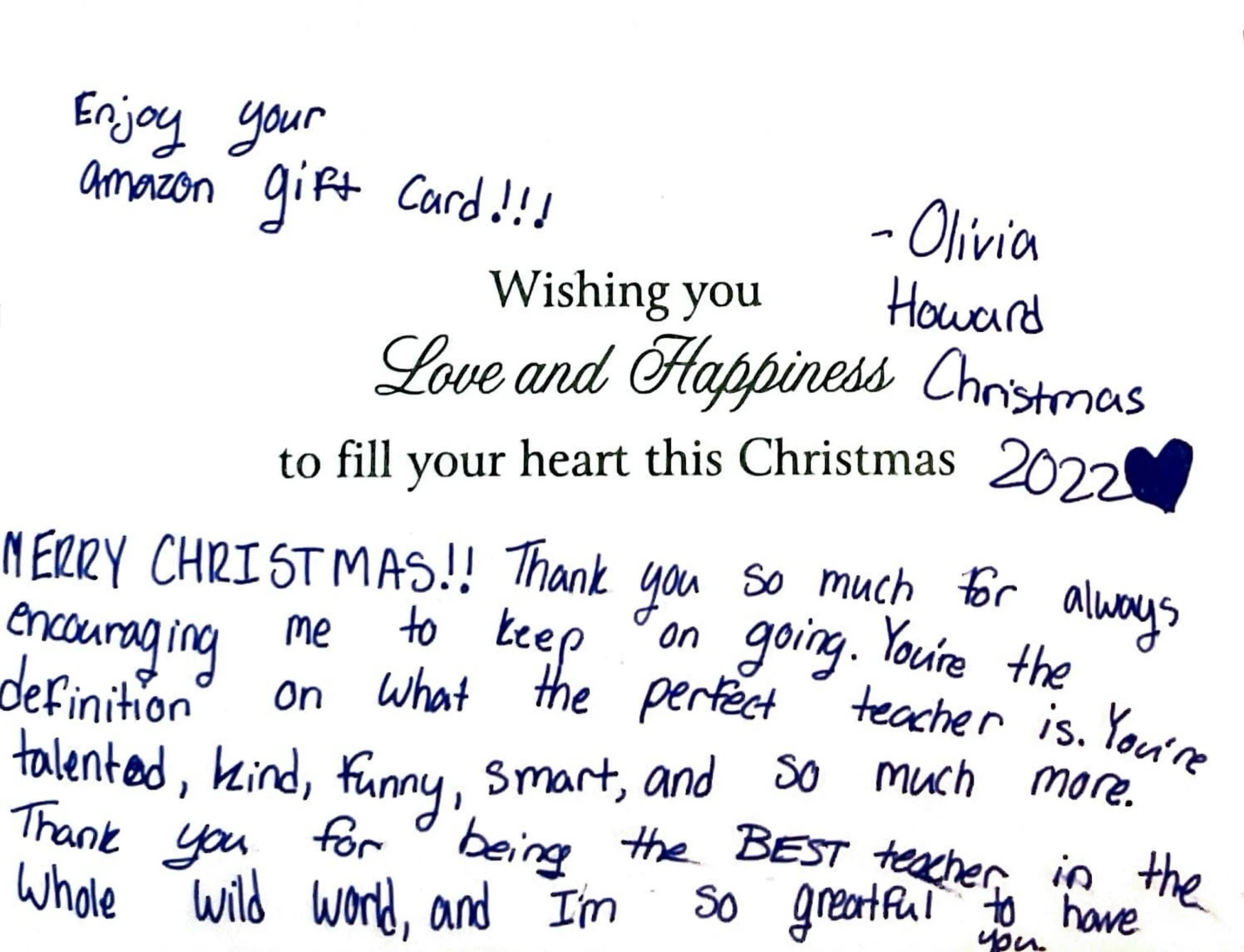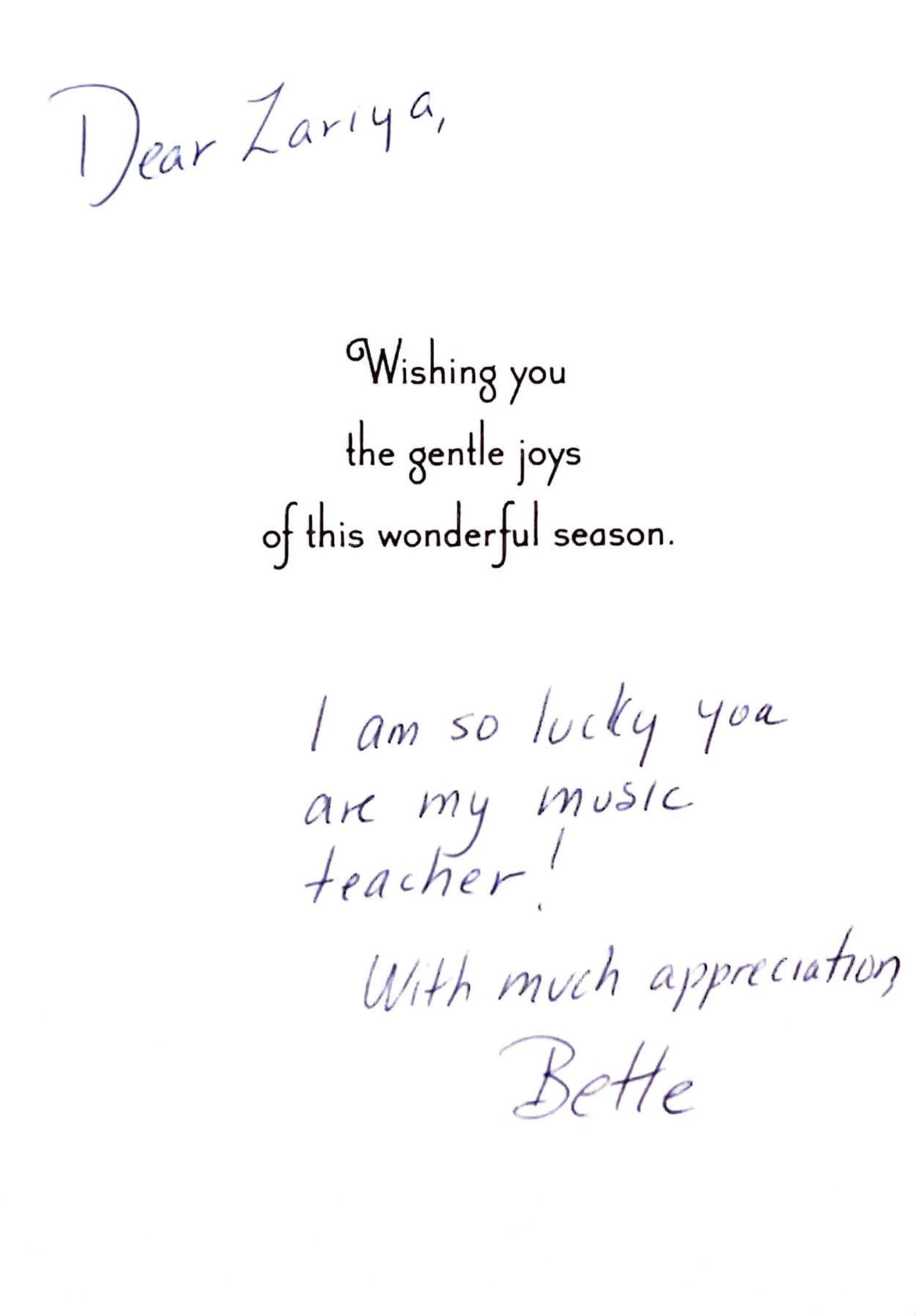 Over the course of my teaching journey, I’ve been fortunate to receive kind words and thoughtful notes from students and their families. These heartfelt messages, often shared through handwritten cards, serve as a powerful reminder of the impact music education can have beyond the classroom. I truly cherish these moments of connection and encouragement, they reflect the relationships built through music and the joy of watching students grow both musically and personally.